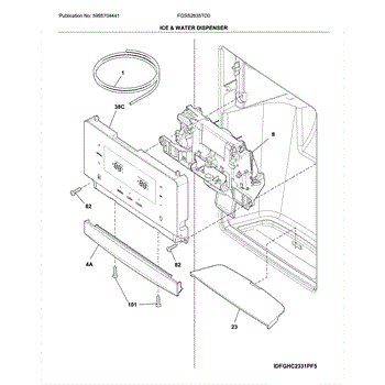 Water tube routes water from the supply to the dispenser or ice maker. Replace if cracked, leaking, or accidentally cut during door removal or service.