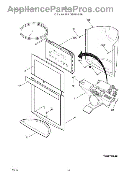 The Dispenser Assembly is an OEM part for Frigidaire refrigerators. It is responsible for dispensing water and ice from the refrigerator door, providing easy access to chilled water and ice cubes.
