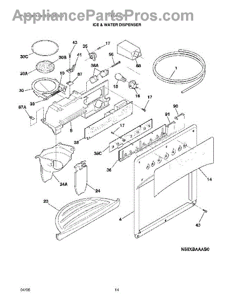 Drip tray installs below the water and ice dispenser to catch spills and drips. Replace if cracked, broken, or tabs are damaged causing it to fall out.