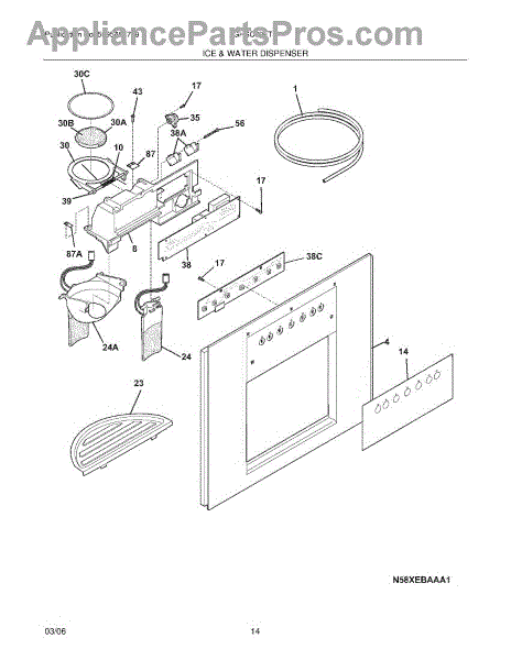 The Ice Chute Door Insulation is an OEM replacement part for Frigidaire refrigerators. It is installed on the ice chute door to prevent warm air infiltration and moisture buildup around the ice dispenser. Causes may include compression or cracking of insulating foam/material from normal use stress. Spills exposing it to liquid are also damaging. Symptoms of defective insulation consist of: