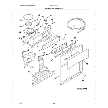 Water tube routes water from the supply to the dispenser or ice maker. Replace if cracked, leaking, or accidentally cut during door removal or service.