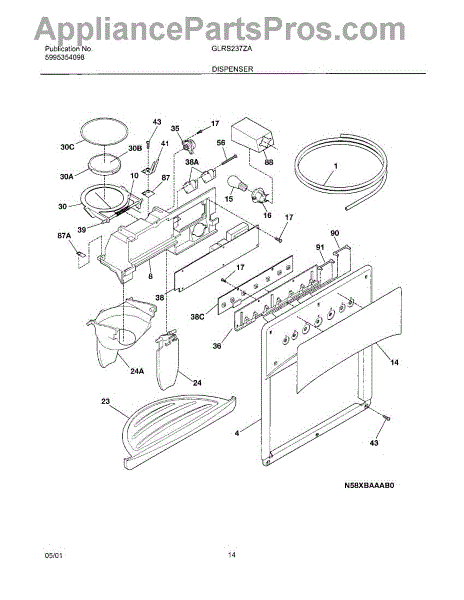 The Dispenser Switch is an OEM replacement part for Frigidaire refrigerators. It is a component that controls the operation of the water and ice dispenser, allowing users to conveniently access chilled water, cubed ice, or crushed ice from the refrigerator door.