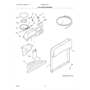 Water tube routes water from the supply to the dispenser or ice maker. Replace if cracked, leaking, or accidentally cut during door removal or service.