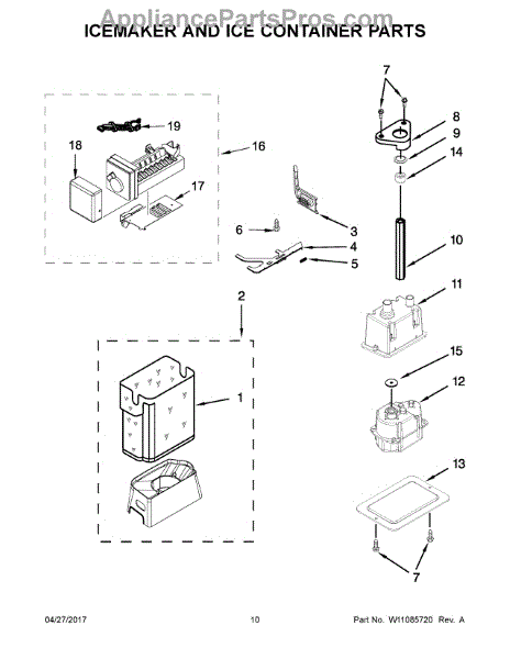 This OEM Whirlpool replacement part is compatible with Maytag, KitchenAid, Jenn-Air, Magic Chef, and Kenmore models. Replacing a faulty or damaged ice container restores convenient access to home-produced ice.