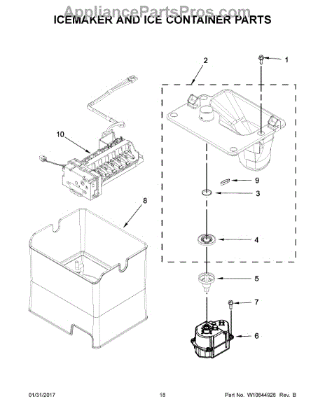 Causes of a bad ice chute plate can include cracks or deformities preventing a tight seal, stripped mounting holes compromising stability over time, or damage blocking ice from traveling smoothly through the chute assembly.