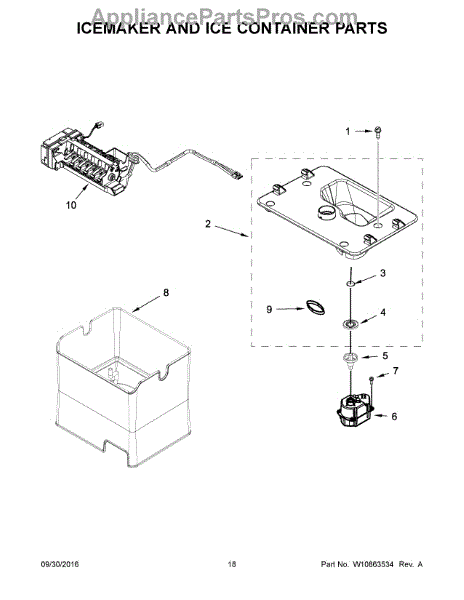 Parts for Whirlpool 7WF736SDAM14: 10 - Icemaker And Ice Container Parts