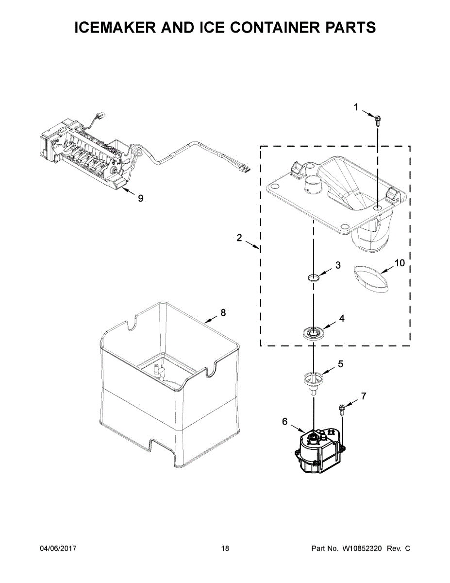 Parts for Whirlpool WRF736SDAW14: 10 - Icemaker And Ice Container Parts