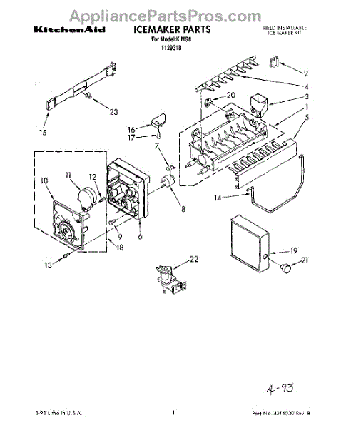 Ice stripper removes ice cubes from the ice maker mold so the dispenser or storage bin fills properly. Replacing a worn or broken stripper helps the ice maker eject cubes cleanly and reduces ice jams or stuck cubes. What it does: