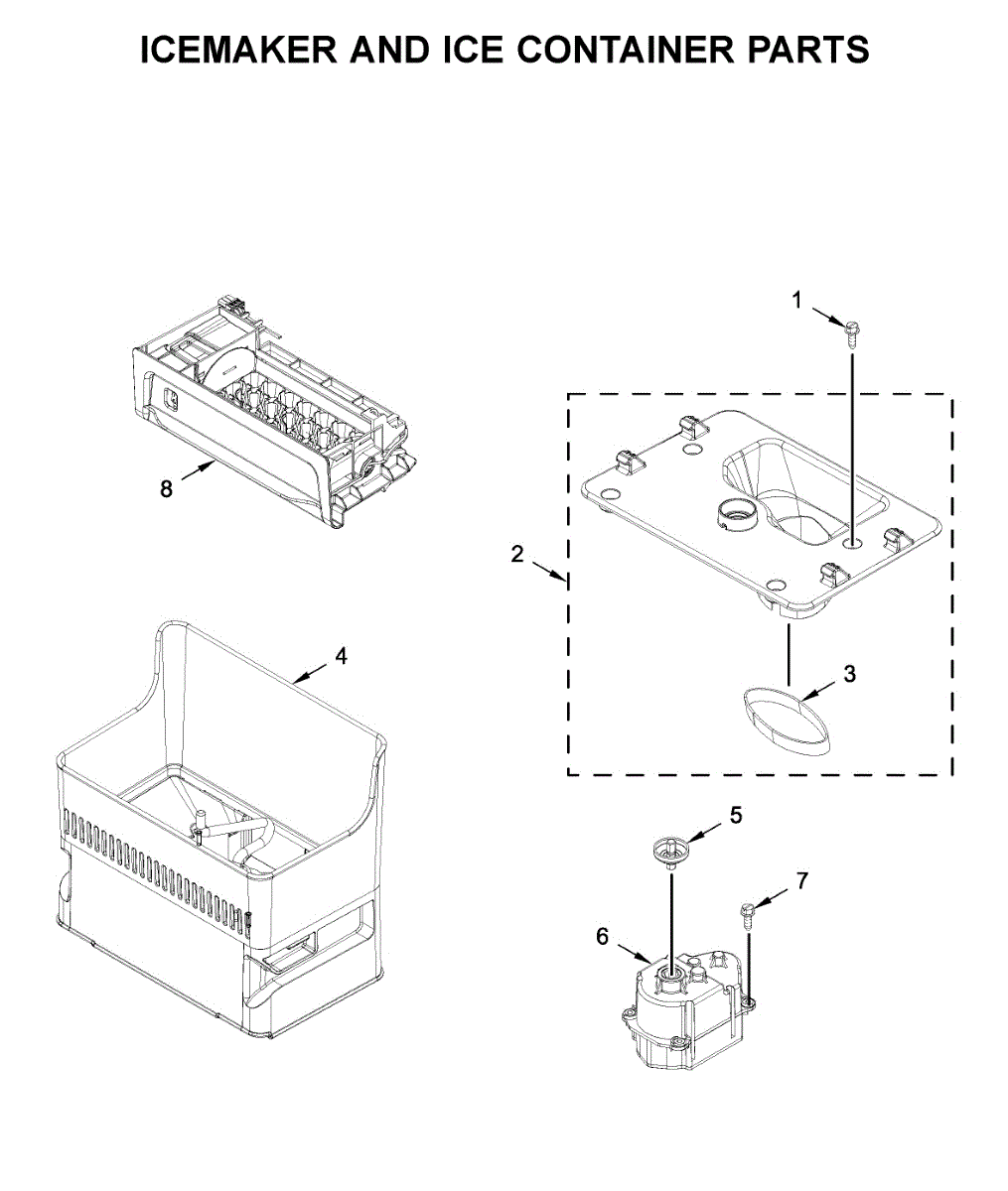 Parts for Kitchenaid KRFC704FSS01: Icemaker And Ice Container Parts