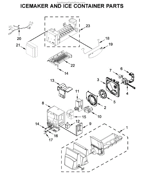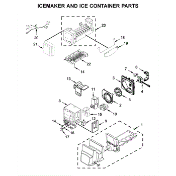 The Ice Container Assembly is an OEM component for Whirlpool refrigerators. It is the bin that collects and stores ice produced by the ice maker. With its precise design and durable construction, the ice container allows ice cubes to easily drop down through the chute from the ice maker.