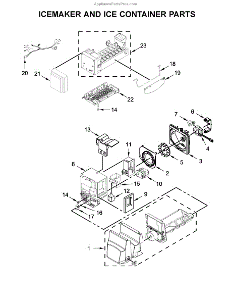 The Ice Container Assembly is an OEM component for Whirlpool refrigerators. It is the bin that collects and stores ice produced by the ice maker. With its precise design and durable construction, the ice container allows ice cubes to easily drop down through the chute from the ice maker.