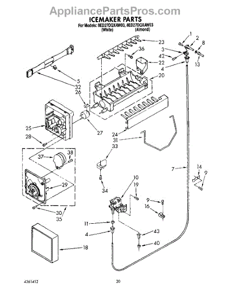 Note: This is the complete horizontal ice dispenser bucket assembly with a crusher. It fits 25 and 27-cubic-foot refrigerator models. For 20 cubic foot models order WP2209778. For 22 cubic foot models order WPW10312301.
