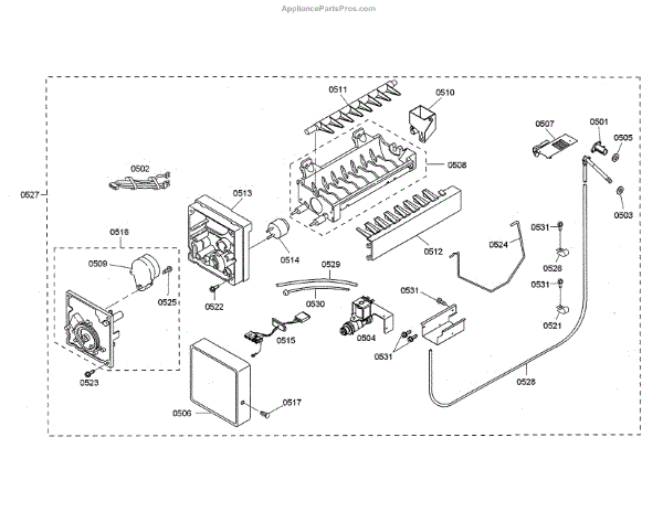 This ice container is the molded bin that holds and dispenses ice from the freezer, restoring a clean storage area and reliable ice delivery. It replaces cracked, warped, or worn bins that leak or block the dispenser. What it does: