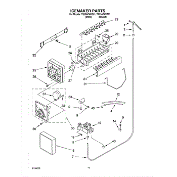 The Ice Container Assembly is an OEM part for Whirlpool refrigerators. This assembly includes the ice bin, where ice is collected, and often features integrated mechanisms or augers for dispensing ice through the refrigerator's door.
