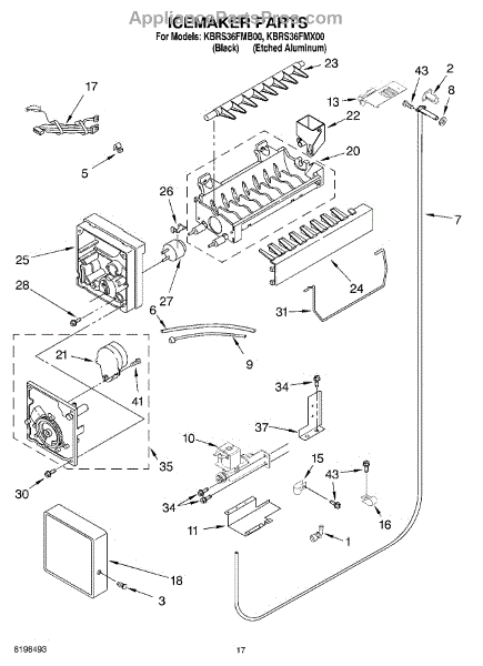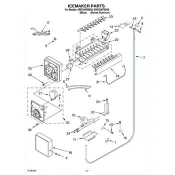 Note: The icemaker does not include the harness or the shut off arm.