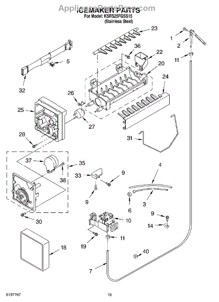 Note: This is the complete horizontal ice dispenser bucket assembly with a crusher. It fits 25 and 27-cubic-foot refrigerator models. For 20 cubic foot models order WP2209778. For 22 cubic foot models order WPW10312301.