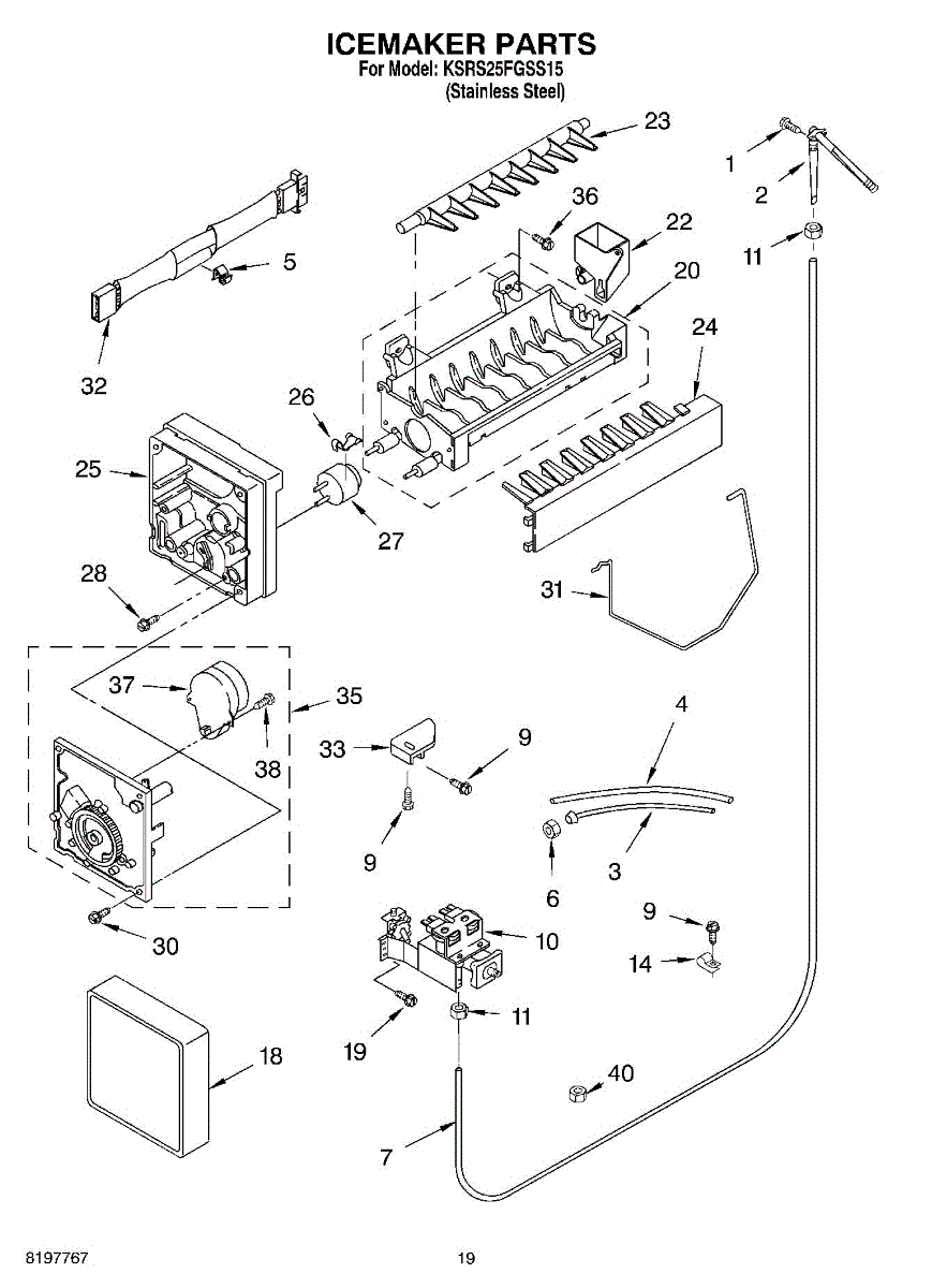 Ice maker leaking or shutoff arm broken? This fill cup and bearing assembly directs water into the mold and supports the arm. 15-minute DIY fix.