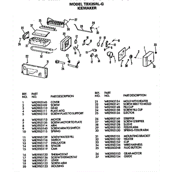 Parts for Ge TBX25RLGL: Icemaker Parts