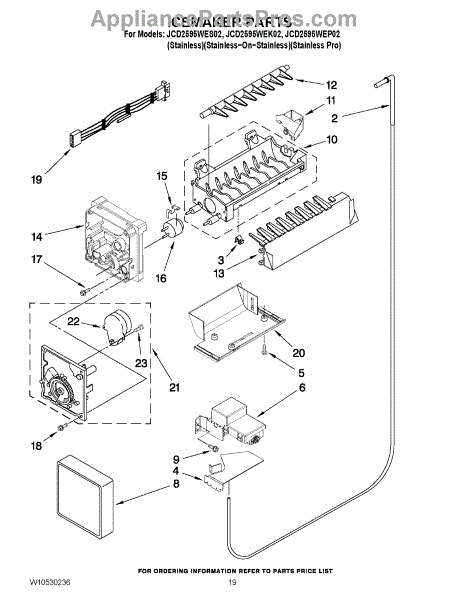 Parts for Jenn-Air JCD2595WEP02: 12 - Icemaker Parts