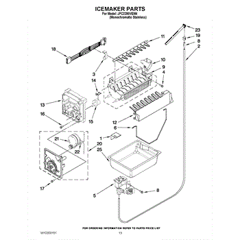 The Ice Maker Wiring Harness is an OEM part for Whirlpool refrigerators. This part ensures electrical connectivity between the ice maker and the refrigerator's power supply, facilitating the various functions required for ice production. The wiring harness is key to the ice maker's operation, transmitting power and sensor signals that govern the ice-making cycle, including water filling, freezing, and ejecting ice into the bin.