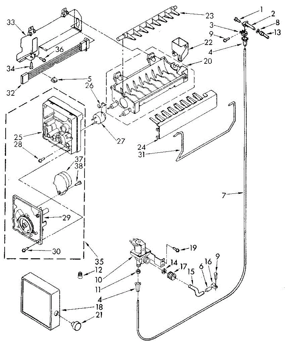 Ice maker leaking or shutoff arm broken? This fill cup and bearing assembly directs water into the mold and supports the arm. 15-minute DIY fix.