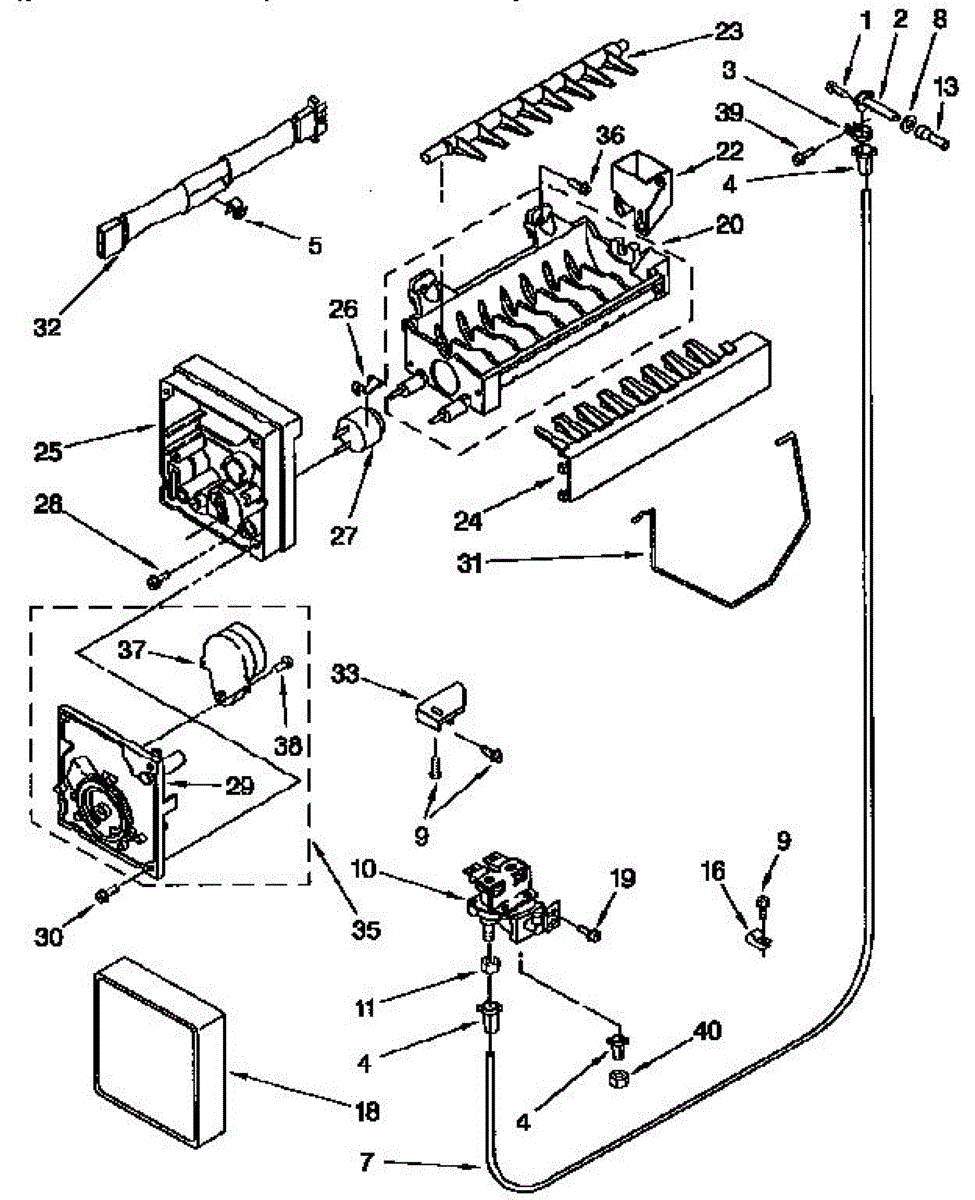 Connects water supply to ice maker. Replace if cracked, broken, or leaking. Installs in freezer compartment with two screws. Essential for leak-free operation.