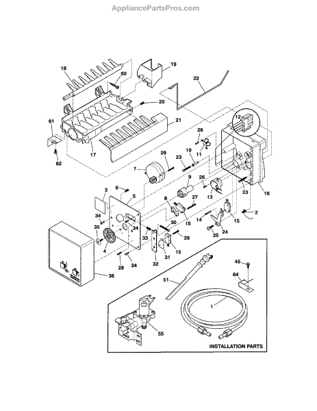 Fix ice maker overfilling, water spillage, or no ice production. Includes cover, fill cup, bail arm, and harness. Easy 5-10 minute DIY install.