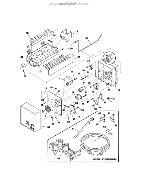 Fix ice maker overfilling, water spillage, or no ice production. Includes cover, fill cup, bail arm, and harness. Easy 5-10 minute DIY install.