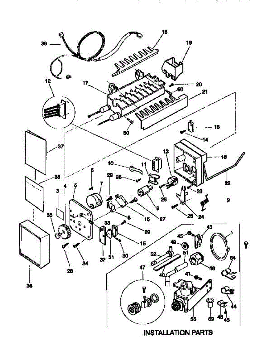 Wire harness for ice makers and refrigerators. Connects electrical components inside the unit. Replace if wires are frayed, damaged, or connectors are broken.