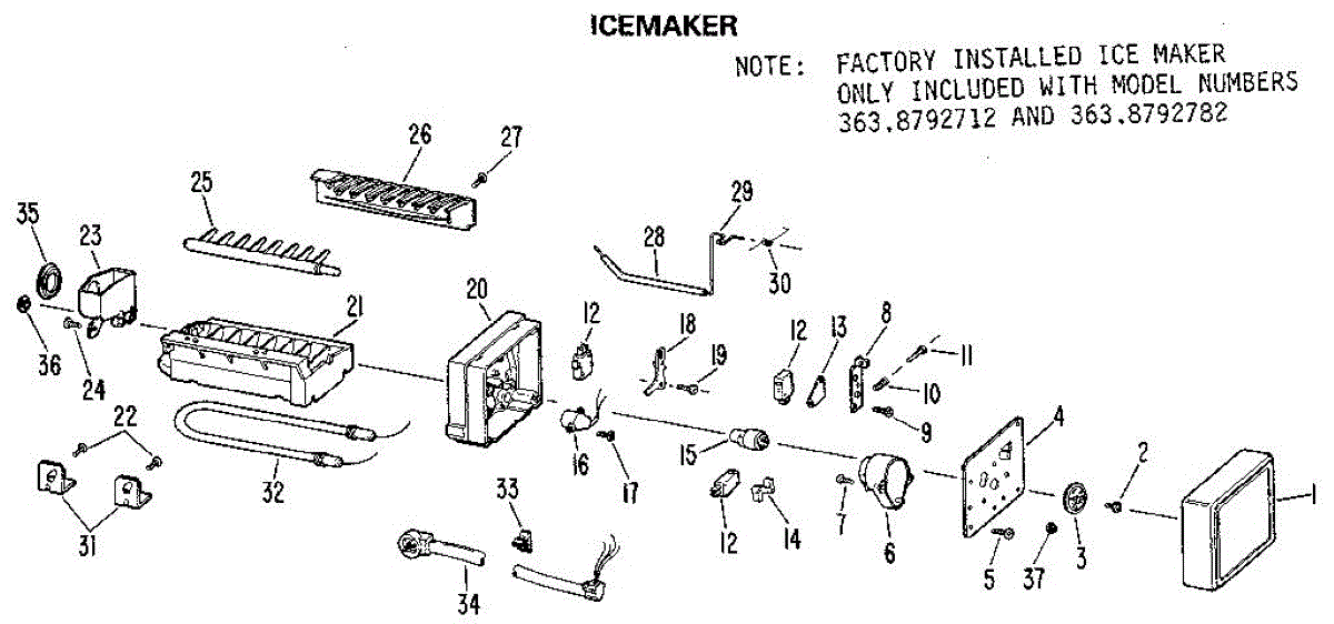 Parts for Kenmore 363.8692712 (3638692712, 363 8692712): Icemaker Parts