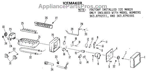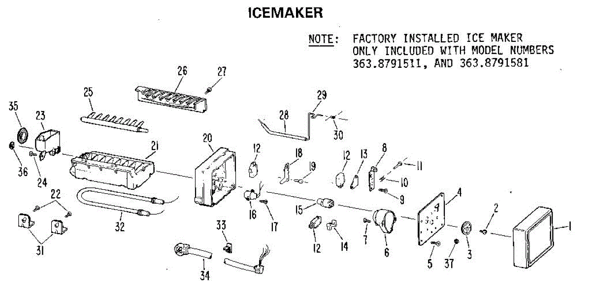 Parts for Kenmore 363.8791581 (3638791581, 363 8791581): Icemaker Parts