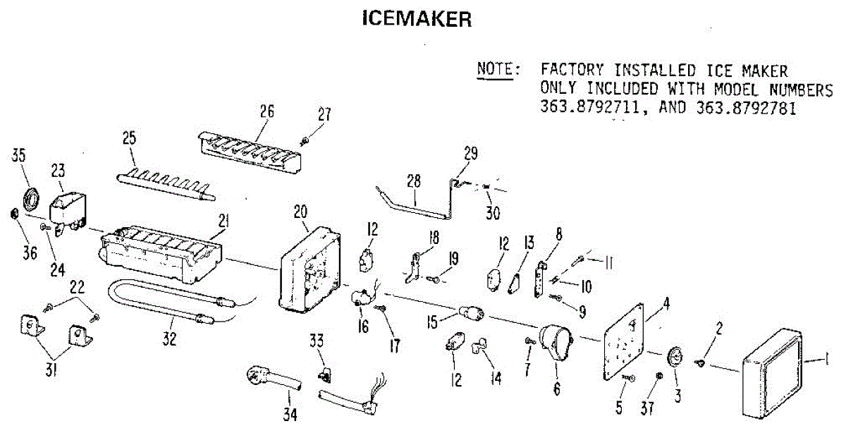Parts for Kenmore 363.8792711 (3638792711, 363 8792711): Icemaker Parts