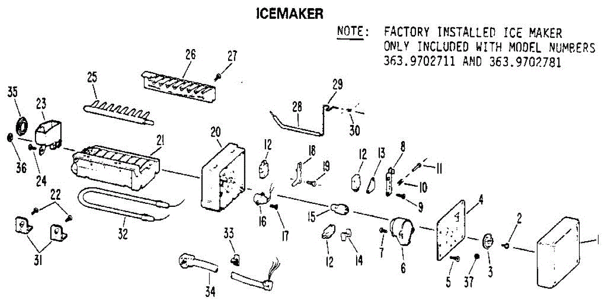 Parts for Kenmore 363.9602711 (3639602711, 363 9602711): Icemaker Parts