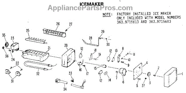 Parts for Kenmore 363.9615613 (3639615613, 363 9615613): Icemaker Parts