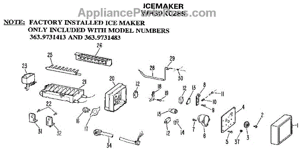 Parts for Kenmore 363.9631413 (3639631413, 363 9631413): Icemaker Parts
