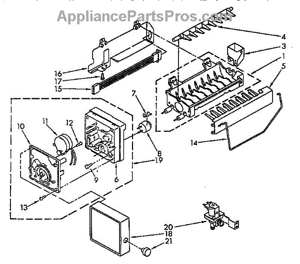 This replacement ejector is the plastic arm that pushes harvested ice cubes out of the ice mold and into the storage bin, helping restore proper ice ejection and reduce ice that sticks inside the tray. What it does: