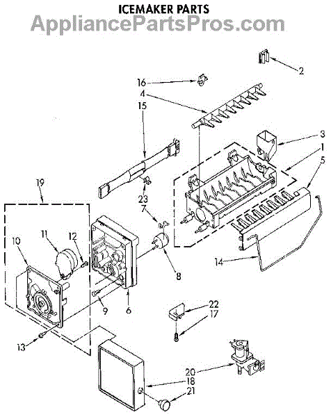 Ice maker leaking or shutoff arm broken? This fill cup and bearing assembly directs water into the mold and supports the arm. 15-minute DIY fix.