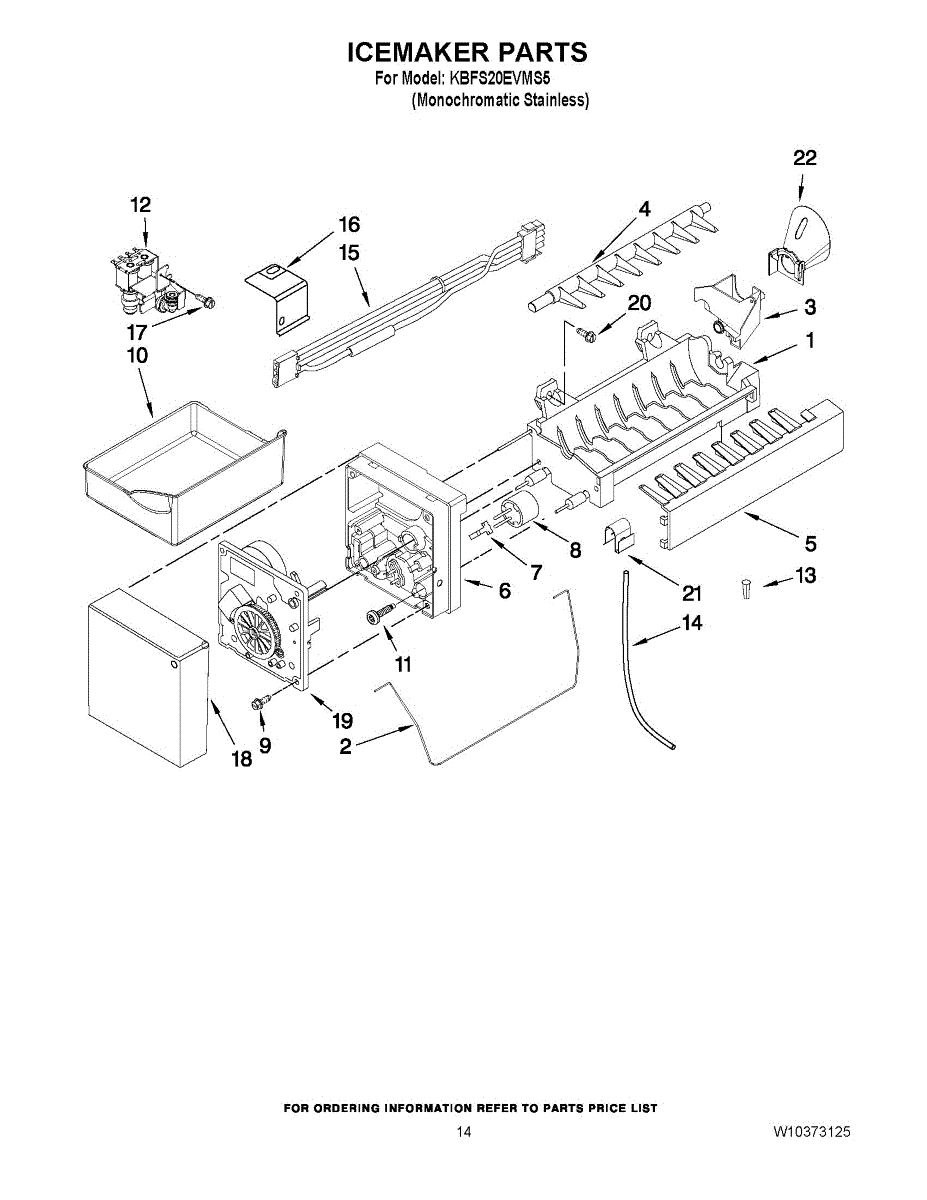 Parts for Kitchenaid KBFS20EVMS5: 08 - Icemaker Parts
