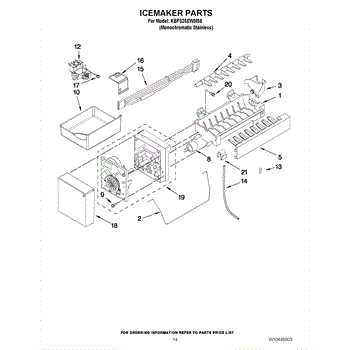 Note: This replacement icemaker has a plastic tray on the bottom. If you are replacing this part the original icemaker you have to remove the plastic tray from this icemaker so the bracket will connect to hold the icemaker in place