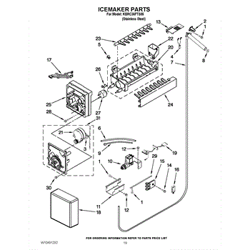 Note: The icemaker does not include the harness or the shut off arm.