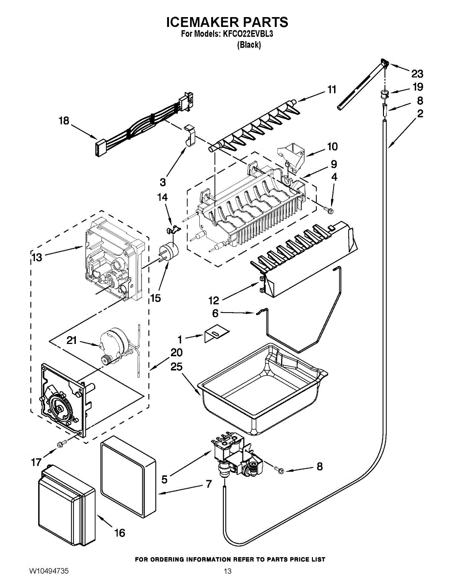 Parts for Kitchenaid KFCO22EVBL3: 07 - Icemaker Parts