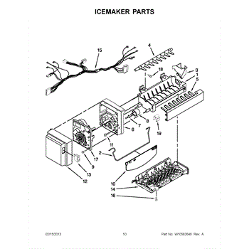 The Ice Maker Assembly is an OEM part for Whirlpool refrigerators, designed to replace your fridge's original ice-making unit. This assembly is responsible for ensuring a consistent and reliable supply of ice, featuring components such as the ice mold, the water inlet valve, and the ice ejector arms.
