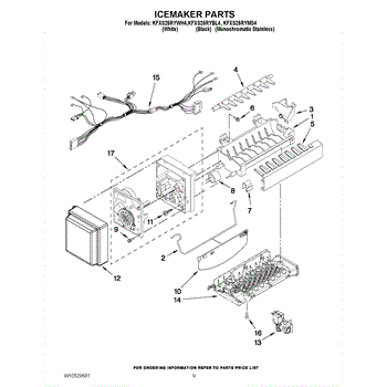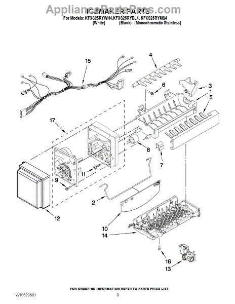 NOTE: 8 cube icemaker Includes two wire harnesses and shut off arm.