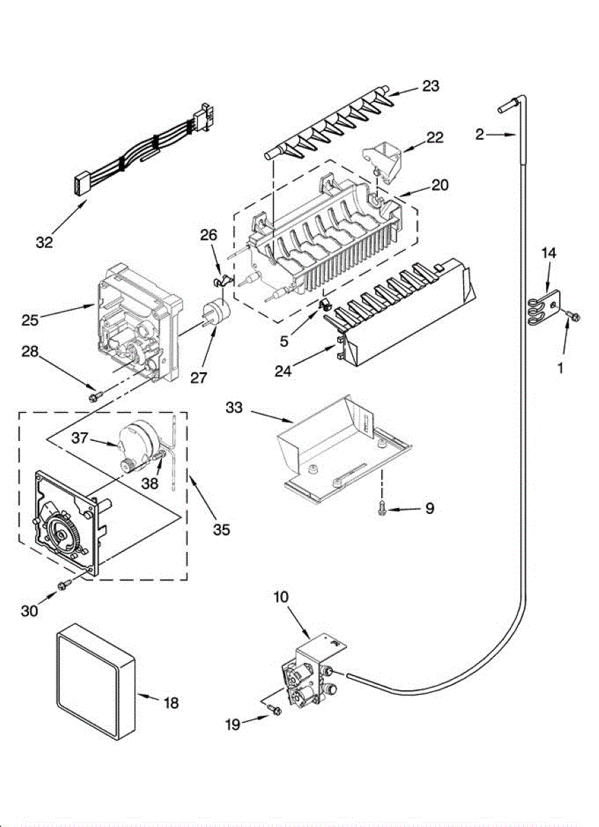 Ice maker not producing ice or working intermittently? This wire harness restores power and control signals to fix corroded or damaged connections.