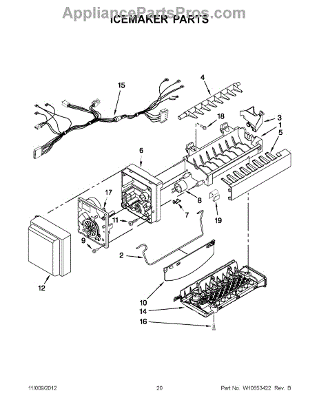 The Icemaker Fill Cup is an OEM part for Whirlpool bottom-mount and side-by-side refrigerators. Located inside the icemaker assembly, the fill cup sensor works to automatically detect when an ice scoop or bucket is in place below the icemaker chute. It signals the icemaker to drop ice cubes into the receptacle below. Causes of a bad fill cup sensor can include mineral or dirt build-up inhibiting sensor response, moisture damage to its electronic functioning, or physical damage to the sensor head. Symptoms of a bad fill cup sensor include:
