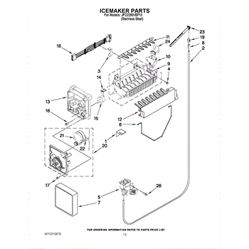 The Ice Maker Wiring Harness is an OEM part for Whirlpool refrigerators. This part ensures electrical connectivity between the ice maker and the refrigerator's power supply, facilitating the various functions required for ice production. The wiring harness is key to the ice maker's operation, transmitting power and sensor signals that govern the ice-making cycle, including water filling, freezing, and ejecting ice into the bin.