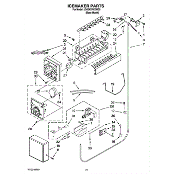 Note: The icemaker does not include the harness or the shut off arm.