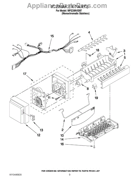 NOTE: 8 cube icemaker Includes two wire harnesses and shut off arm.