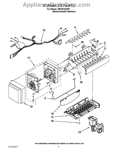 NOTE: 8 cube icemaker Includes two wire harnesses and shut off arm.