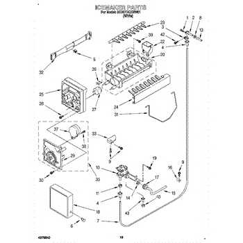 The Ice Container Assembly is an OEM part for Whirlpool refrigerators. This assembly includes the ice bin, where ice is collected, and often features integrated mechanisms or augers for dispensing ice through the refrigerator's door.